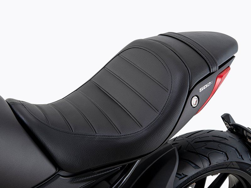 Mit der aggressiven Linienführung und dem exzentrischen Spirit ist die 502C der neue „Urban Cruiser“ von Benelli für alle die designt, die mit Style und Eleganz auf den Straßen der Stadt auffallen wollen. Eine Revolution bei Benelli: Die 502C eröffnet eine neue Produktlinie mit starker Persönlichkeit und zeitlosem Design, auch aufgrund der vorgezogenen und verstellbaren Fußrasten nach alter Custom-Tradition, komfortablem und großzügigem Sitz, 770 mm Sitzhöhe und LED-Frontscheinwerfer.