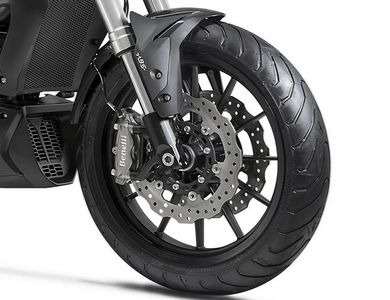 | Bremse vorne | zwei schwimmend gelagerte Wave-Bremsscheiben Ø280mm mit 4 Kolben Bremszange und ABS |