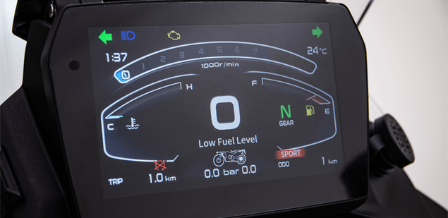 Das aufgeräumte Dieplay mit digitalen udn analogen Anzeigen hält alle wichtigen Informationen gut sichtbar im Blick.